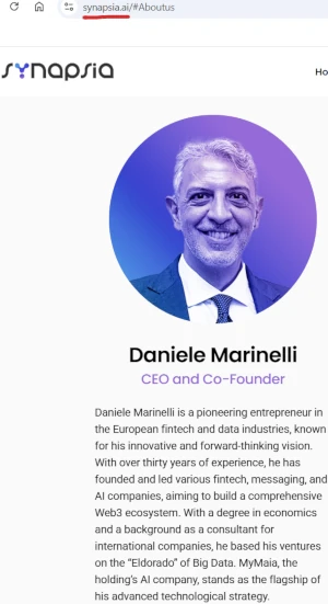 Note there are two Synapsia AI companies. Marinelli’s Synapsia operates from “synapsia.ai”, registered through a Perugia, Italy address on April 23rd, 2022.