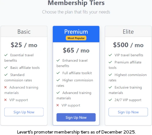 In place of the MLM opportunity, Levarti paid personal referral commissions on travel booked through RSI Vacations.