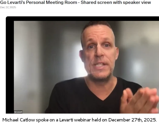 Nonetheless, on the December 27th webinar Michael Catlow represented he had bought into the non-MLM side of Levarti through a merger.