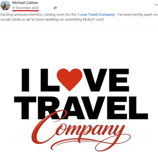 I Love Travel Company’s official FaceBook page was created in January 2023, so there appears to be some overlap.