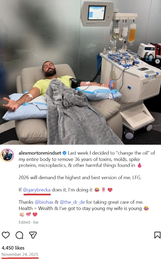 Remembering that Barton claims Morton “slid into his DMs” in October 2025, Alex Morton had settled Iyovia fraud charges with FTC for $76 million a month earlier.