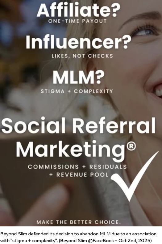 Beyond Slim has abandoned its MLM business model.