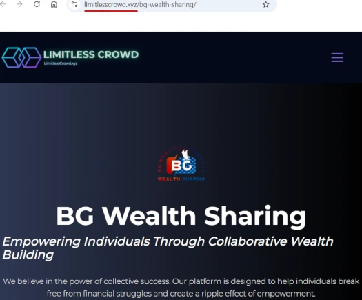 In its BG Wealth Sharing fraud warning, BCSC flagged the domain “limitlesscrowd.xyz”.