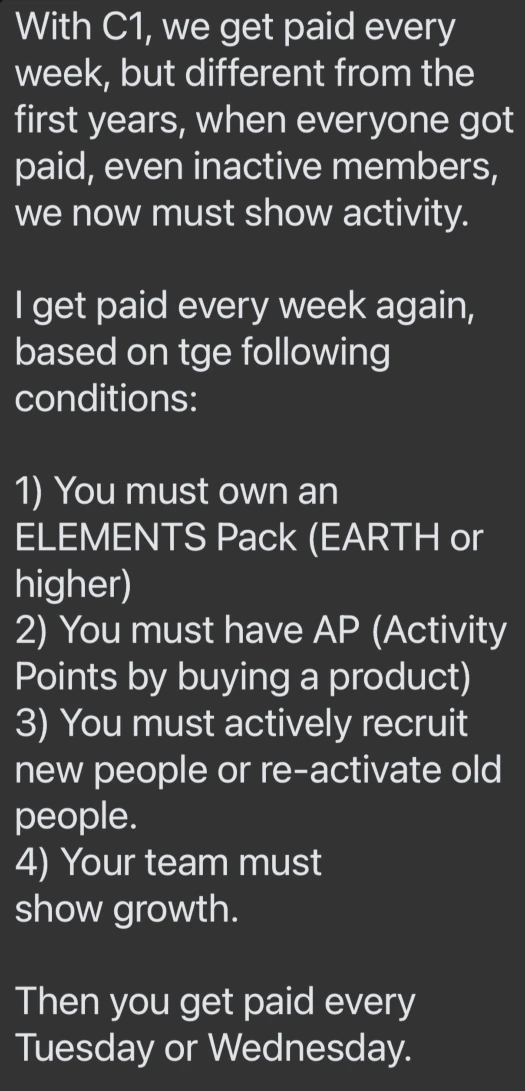 - investors must meet Crowd1 “activity point” requirements (i.e. spend money within Crowd1); and