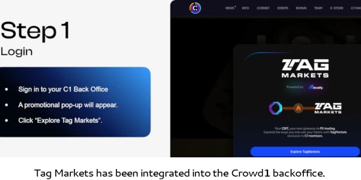 In communications sent out late last month, Director and higher ranked Crowd1 promoters have been advised they can register for Tag Markets through their Crowd1 back office.