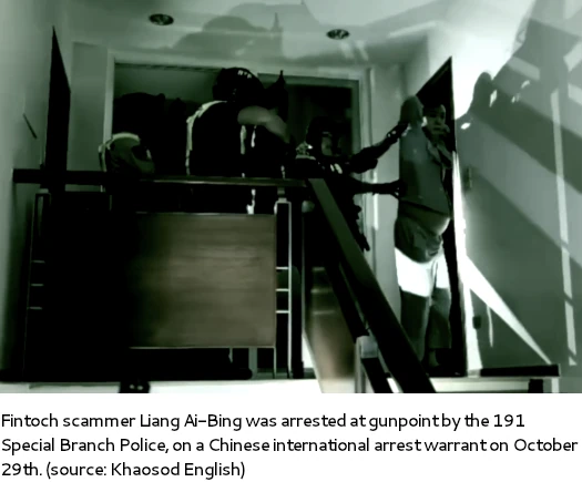 The Thai Fintoch arrest followed an international warrant from Chinese authorities, who themselves had earlier arrested another Fintoch admin.
