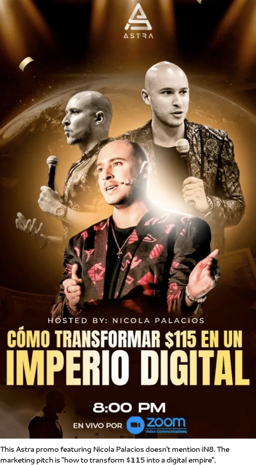 In iN8 marketing webinars, Palacios represents he appears on behalf of iN8 corporate:
