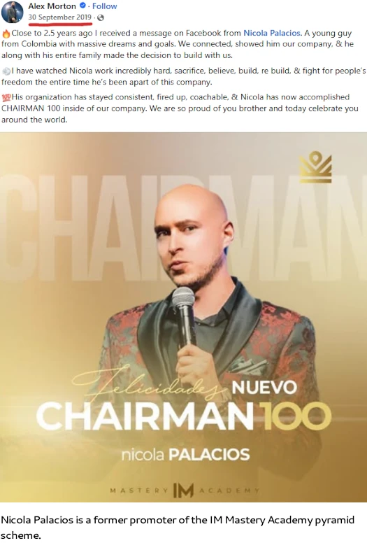 Before iN8 Palacios was promoting IM Mastery Academy: