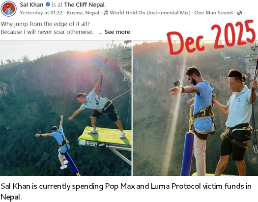 Khan is currently in Nepal, where he’s showing Pop Max and Luma Protocol victims how he’s spending their money: