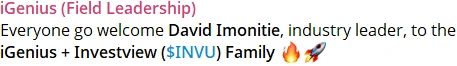 Earlier today (December 14th), a social media post “welcomed” the Nvisionu co-founder and CEO to iGenius: