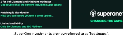 In what appears to be an attempt at pseudo-compliance, SuperOne investments have been branded as “lootboxes”: