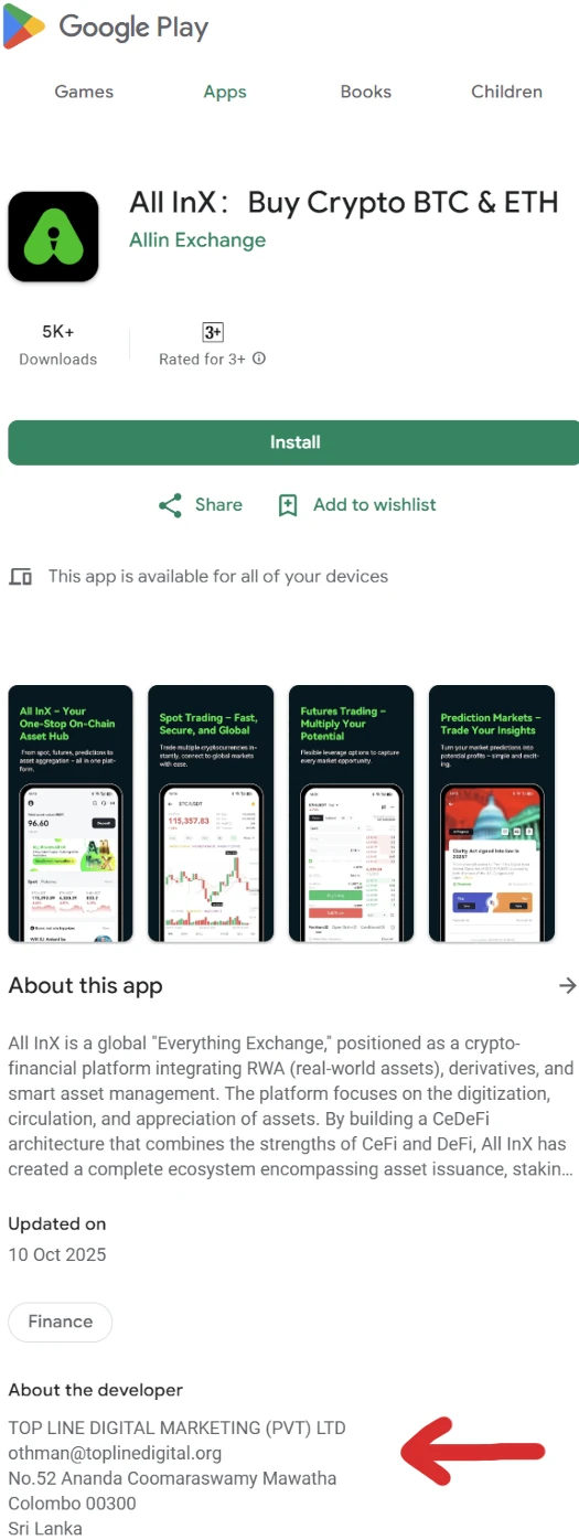 Another data point for All InX is it’s app developer, Top Line Digital Marketing (PVT) LTD.