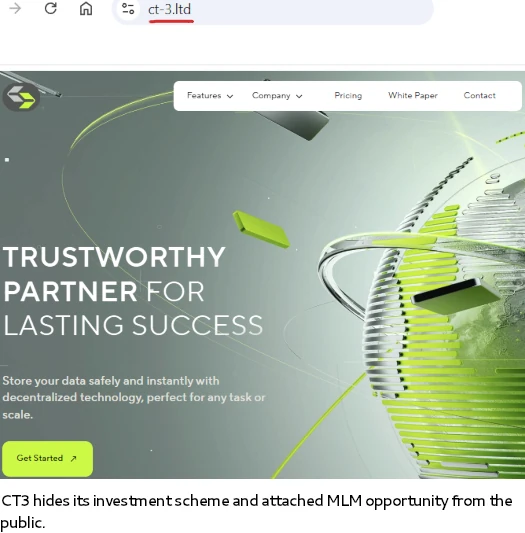 CT3 is running a simple MLM crypto Ponzi. CT3 intentionally hides fraud by: