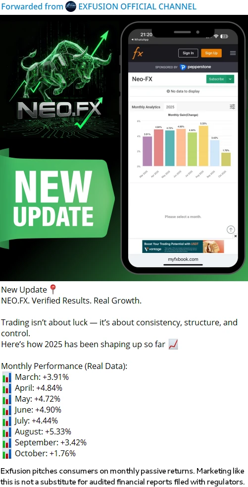 Exfusion pitches consumers on passive returns, purportedly generated via various trading investment schemes: