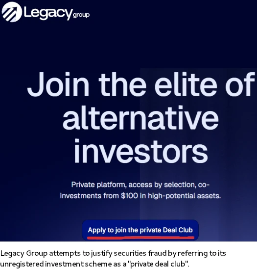 The MLM side of Legacy Group pays on recruitment of promoter investors.