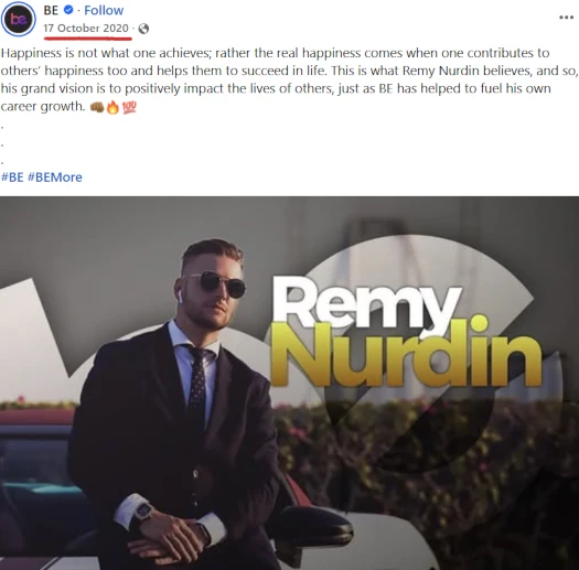 Prior to Legacy Group, Vantis Labs and Prime Academy Global, Nurdin was a promoter of the Be Club pyramid scheme turned fraudulent investment scheme.