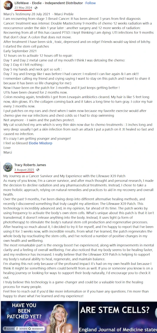 Another example; testimonies touting LifeWave’s patches as a treatment and/or recovery aid for cancer aren’t hard to find: