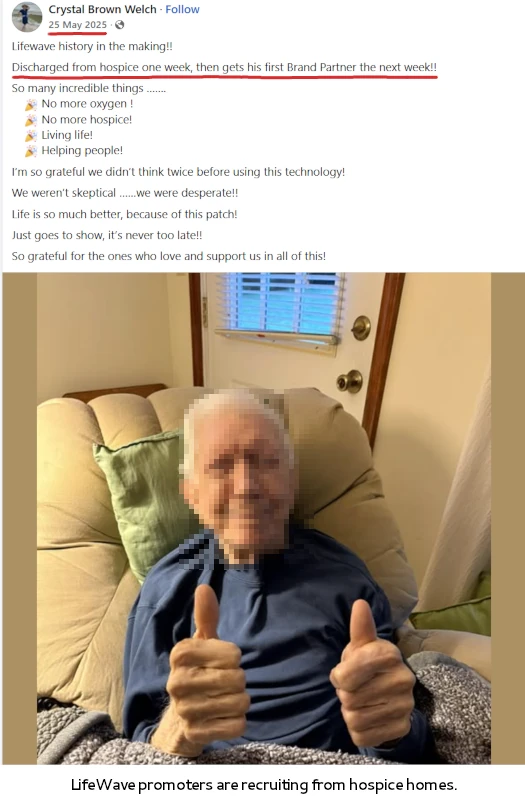 Vulnerable people are targeted, leading to LifeWave promoters trying to “stop or reverse” cancer.
