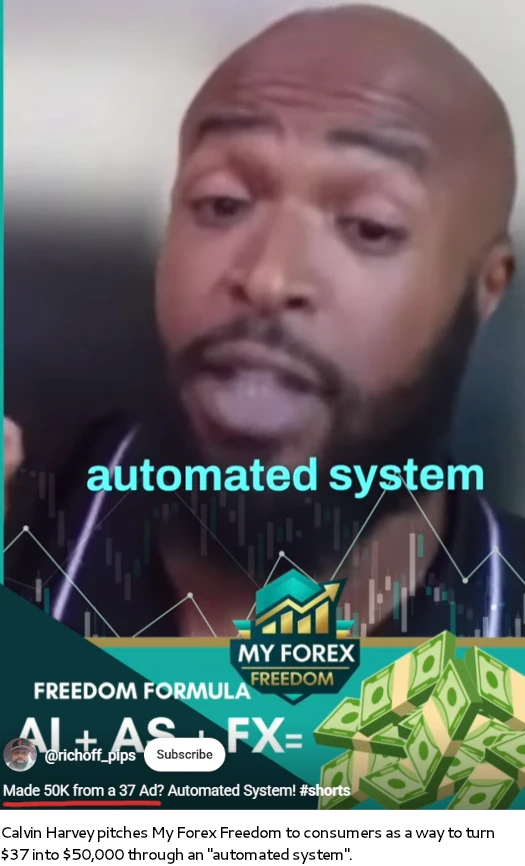 Harvey, who also goes by “richoff_pips”, appears on My Forex Freedom marketing webinars but doesn’t acknowledge ownership of the company.
