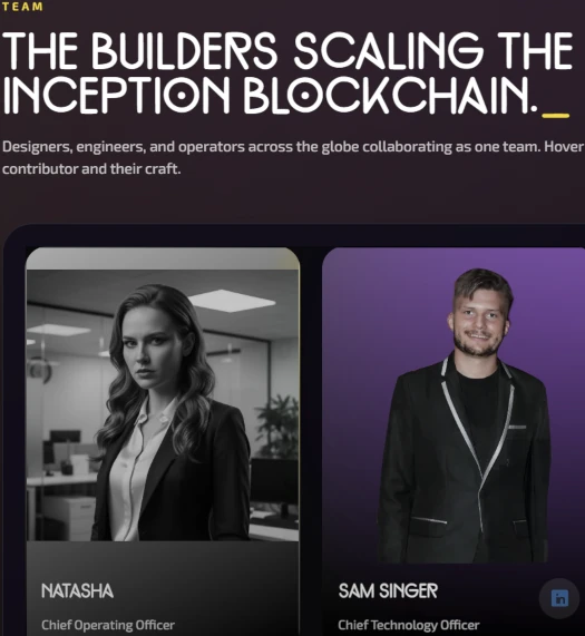 Inception Chain’s website provides a boatload of executives with names you’ve never heard of. Some of the photos used look AI-generated but one name we can hone in on is Sam Singer.
