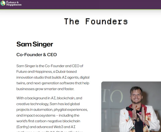 Sam Singer is also co-founder and CTO of Future & Happiness, a Dubai-based AI agent firm.