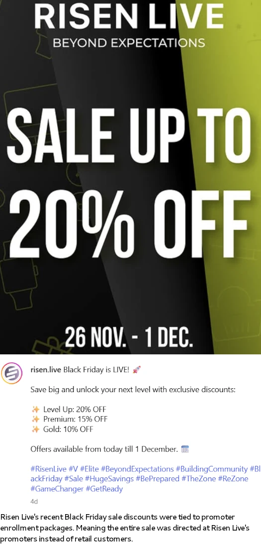 Supporting this is Risen Live’s recent Black Friday sale, which was exclusively pitched at promoters.
