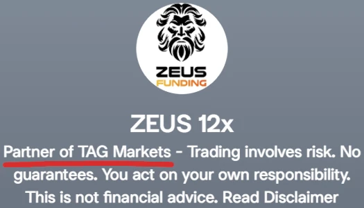 Zeus Funding promoter membership is tied to creation of a Tag Markets account.